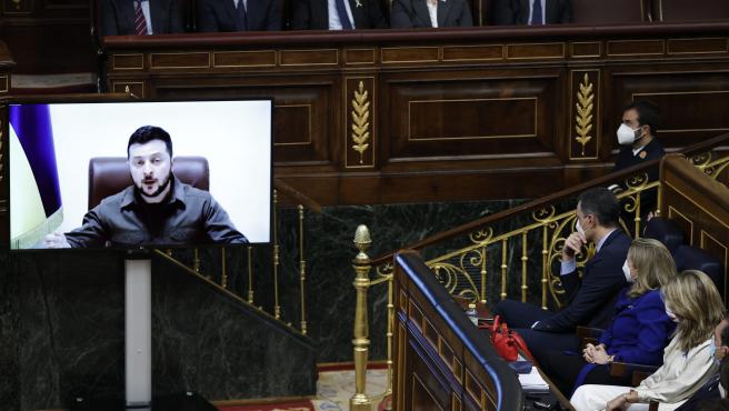 Durante su intervención ante el Pleno de la Cámara Baja, al que se ha dirigido de forma telemática, Zelenski ha agradecido que “muchas compañías españolas han parado de funcionar en Rusia”, por lo que ha querido “agradecer a estas compañías, al pueblo y a la sociedad esta posición”.