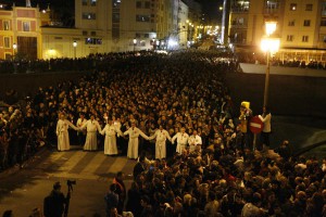 M.F.- Otro año más. Sin remedio. El Cautivo volvió a reinar en la noche del Lunes Santo en Málaga. Si la tarde se repartió entre devociones diversas, en un contraste de emociones y presencia en la calle, el Cautivo se volvió a situar como la referencia indiscutible de la noche. La túnica blanca volvió a ser el icono que resume las esperanzas y rezos de miles de malagueños. (SAETA DE DIANA NAVARRO AL CAUTIVO)