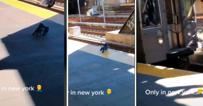 Captan el momento en que dos palomas empujan a otra a las vías del tren (Video)