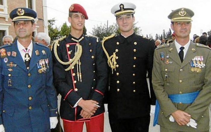 De izquierda a derecha, el coronel Carlos Martínez de Vara de Rey junto a su sobrino, su hijo y su hermano Gerardo.