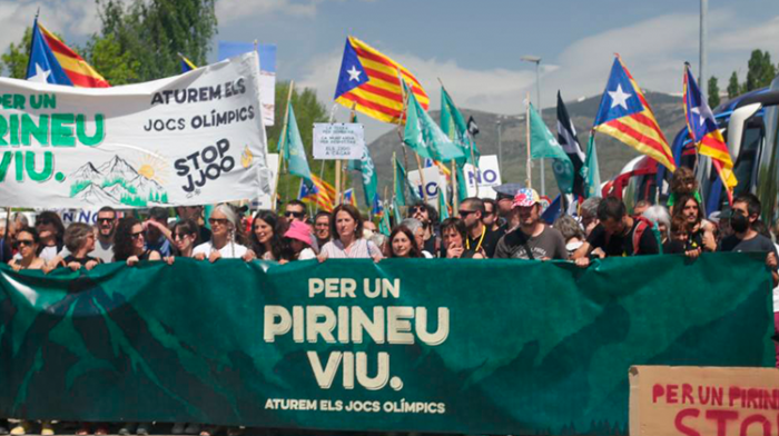 Reclaman que “no queremos unos juegos, queremos escuelas, hospitales y carreteras”. Los manifestantes han traído pancartas de “Por un Pirineo vivo, detengamos los Juegos Olímpicos”, “30 días de fiesta, 30 años de miseria” y “No a los Juegos españoles'”.