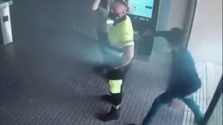 Un hombre ha apuñalado por la espalda a un vigilante de seguridad en la estación de Ferrocarriles de la Generalitat de Cataluña (FGC) de Igualada. En un vídeo de la agresión, que ocurre en pocos segundos y ha captado una cámara de videovigilancia, el hombre se dirige por detrás al vigilante, que habla con una mujer, le da dos cuchilladas y huye corriendo.