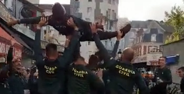 (Video) La Guardia Civil suspende a varios alumnos por hacer una grotesca parodia del traslado del Cristo de la Buena Muerte