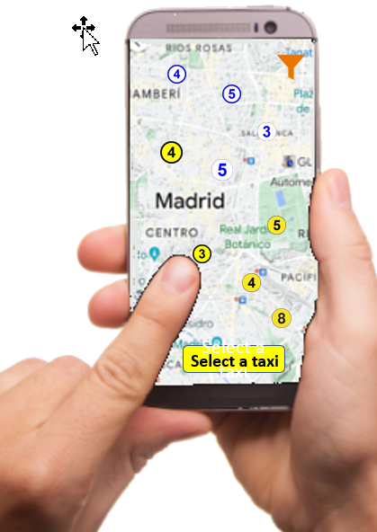 Así, el cliente puede filtrar el que aparezcan en el mapa solo los taxis que cumplen con sus requerimientos. Por ejemplo, conducido por una mujer, que lleve mínimo 6 pasajeros, que acepte tarjetas de crédito y que hable inglés.