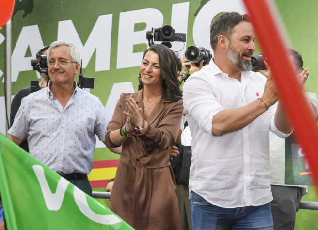 El presidente de Vox, Santiago Abascal, y la candidata de la formación a la Presidencia de la Junta de Andalucía, Macarena Olona, han cerrado este viernes la campaña electoral por los comicios autonómicos del próximo domingo 19 de junio lanzando un mensaje de “mano tendida” al PP de Juanma Moreno “pero para un cambio profundo y real” y para que “el socialismo no vuelva” a Andalucía.