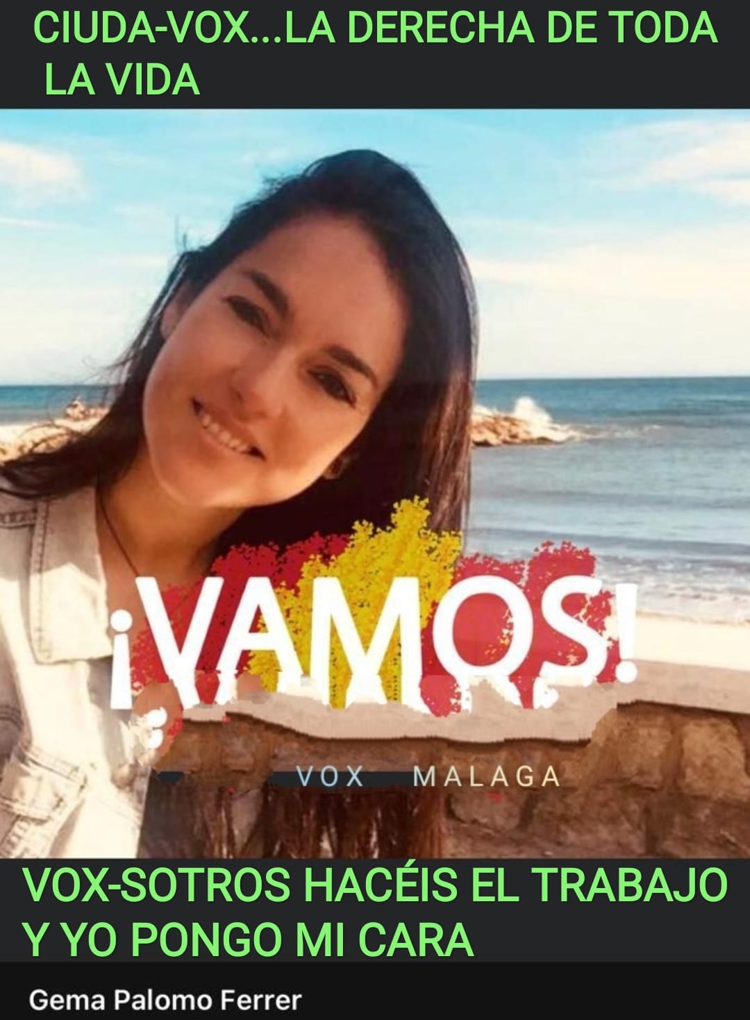 Bueno, pues estos son los activos de los que ahora se rodea Vox Málaga para cubrir sus vacantes. No le auguro ningún futuro político a la despreciable Gema Paloma, aún cuando su mentor intentará mantenerla a salvo. Ya les aseguro que no lo conseguirá y que no llegara viva a las municipales.