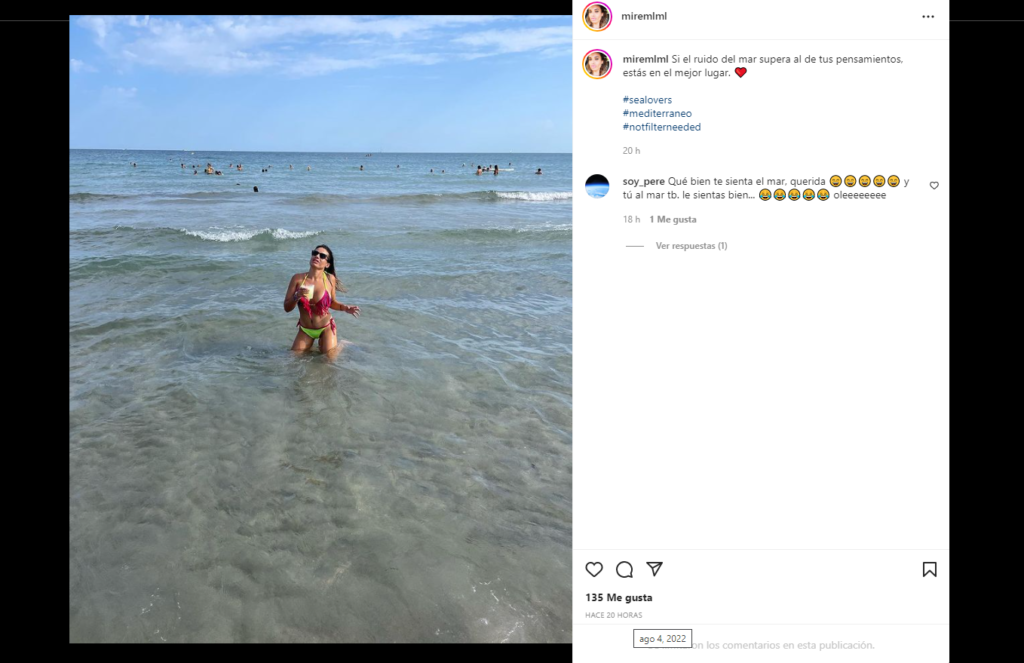 Gracias a su activa cuenta de Instagram, sabemos que alrededor de las 19:00h de la tarde del jueves, es decir, a escasos minutos de que diese inicio la concentración en homenaje a los caídos por ETA, Mireia Moya subía a su perfil las fotos de su divertida tarde en la playa.