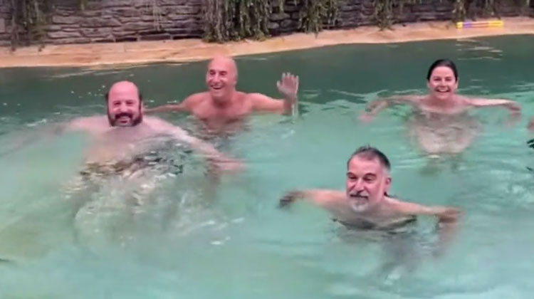La periodista Pilar Rahola ha publicado en su Instagram unos vídeos en los que aparece Jordi Cuixart, Isona Passola, Vicenç Altaió, su marido y otros amigos bañándose en la piscina de su casa en Cadaqués mientras entonan gritos de “independencia”.