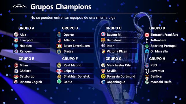 Más suerte tuvieron Real Madrid y Atlético. Los vigentes campeones jugarán en el grupo F contra el Leipzig alemán -el más ‘débil’ del bombo 2- así como con el Shakhtar Donetsk, club al que se enfrentará por tercera temporada consecutiva. Un equipo que ha perdido a todos sus jugadores brasileños tras el comienzo de la guerra el pasado mes de febrero. Además, el Celtic también forma parte del grupo.