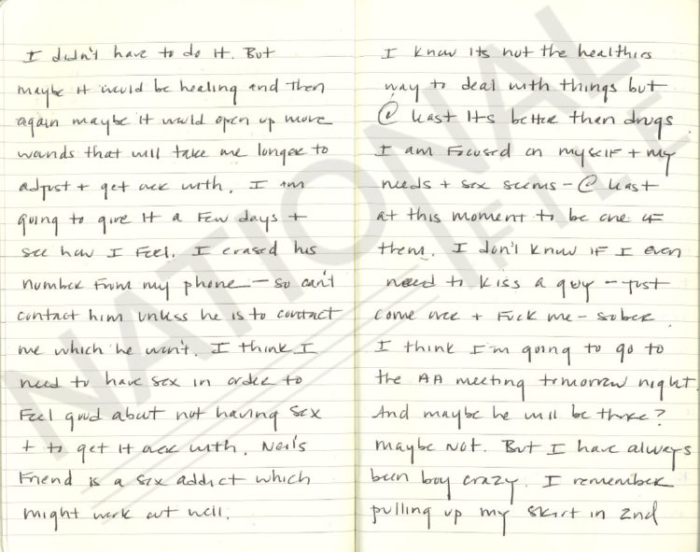 Esa misma propiedad fue luego rentada por Aimee Harris y sus hijos, la cual encontró, entre otras pertenencias, el luego difundido diario que fue vendido por una suma de dinero cercana a los US$ 40.000 a Project Veritas.