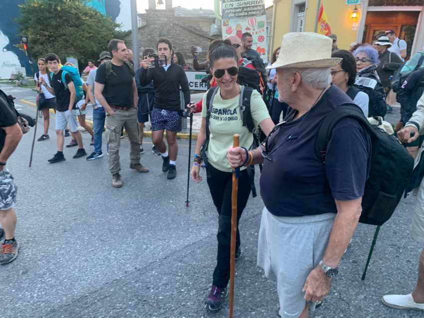 Macarena Olona, durante el Camino de Santiago; detrás, a la izquierda, el portavoz de Vox en la Asamblea de la Región de Murcia, Juan José Liarte.