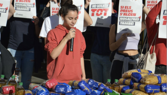 “Esta es una acción de protesta en la que queremos poner sobre la mesa que la subida de precios es inasumible para las jóvenes. No sólo estamos hablando de la gasolina o la luz, sino de alimentos básicos como la leche, la fruta o el pan” , ha señalado la portavoz de Arran, Marina Gispert.