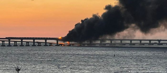 El puente, también conocido simplemente como el puente de Crimea, es considerado como una importante ruta de suministro logístico para las fuerzas rusas en Crimea y en el sur de la Ucrania ocupada por Rusia. La estructura, de 19 kilómetros de longitud, comprende una vía de transporte ferroviario y una autovía.