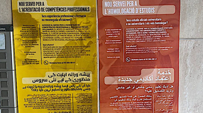 El Ayuntamiento de Barcelona edita carteles informativos sobre formación y estudios en catalán, árabe y bengalí… ¡pero no en español!