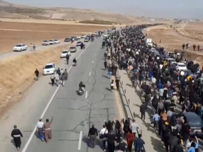A lo largo de ciudad natal de Amini se produjeron choques con las fuerzas de seguridad, que medios oficiales como la agencia ISNA calificaron como “enfrentamientos dispersos”.