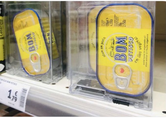 Como muestra, lo visto en un supermercado portugués. Latas de atún a 1,79 euros protegidas con un sistema antirrobo. Vamos mejorando. Esta es la Europa del progreso, la prosperidad, la multiculturalidad, la abundancia, la paz y la justicia. ¡Bienvenidos a la Nueva Europa!
