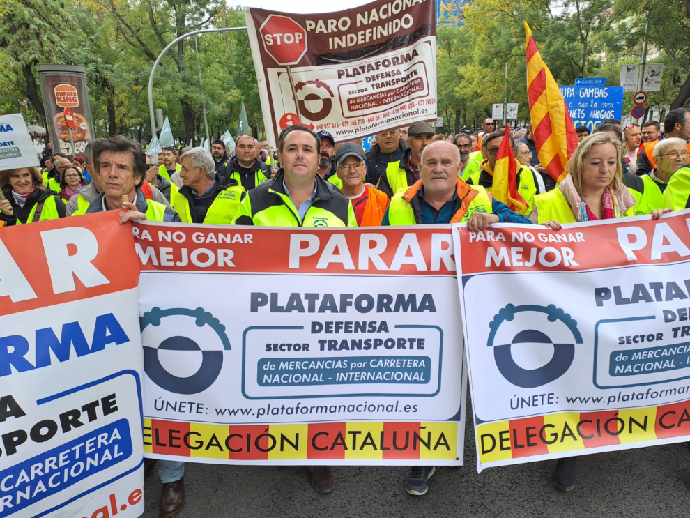 Durante la primera jornada de paro, este lunes, los transportistas participarán en una manifestación en Madrid que hará un recorrido a pie desde la plaza de Carlos V (Atocha) hasta el Ministerio de Transportes, y en la que la plataforma espera que participen también asociaciones de otros sectores como la agricultura, ganadería y hostelería.