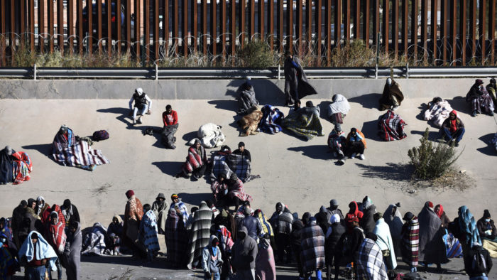 Inmigrantes esperan para cruzar la frontera de EE.UU. en Ciudad Juárez, México, 14 de diciembre de 2022.