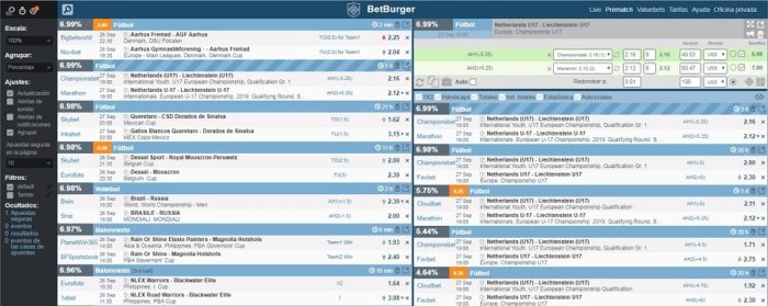 betburger.com es uno de los mejores escáneres de apuestas seguras, que muchos jugadores profesionales utilizan activamente. Actualmente, el escáner recopila y analiza más de 100 casas de apuestas en más de 40 tipos de deportes en vivo y pre-partido.
