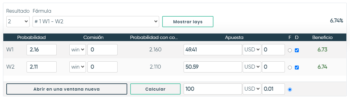 Tambien todos los principales escáneres de arbitraje vienen con una calculadora integrada para ayudar a estimar su apuestas en segundos.