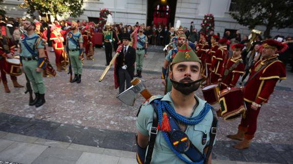 Los desfiles de la Legión han propiciado los principales intercambios de gritos antes de las 11.30 horas, momento en el que la corporación bajo mazas ha iniciado esta fiesta cívico-religiosa para dirigirse a una Capilla Real blindada y acordonada.