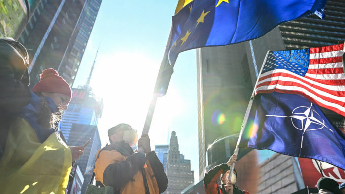 El político respondió así a la imagen de una marcha en el Times Square, en el centro de Nueva York (EE.UU.), donde cientos de manifestantes protestaron contra el militarismo del país norteamericano. Las manifestantes llevaban carteles con lemas como: “Abolir la OTAN. Parar la máquina de guerra” y “No a la guerra de Ucrania”. Además, exigieron que el dinero que financia los conflictos se destine a cubrir las necesidades de la población.