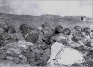 3.- Genocidio armenio, entre 1.915 y 1.923, en el contexto de la Primera Guerra Mundial y de las luchas civiles posteriores en los últimos estertores del Imperio Otomano (antecedente de la actual Turquía) bajo el gobierno de los Jóvenes Turcos, en el que fueron exterminados un millón y medio de armenios y otros muchos forzosamente desplazados.