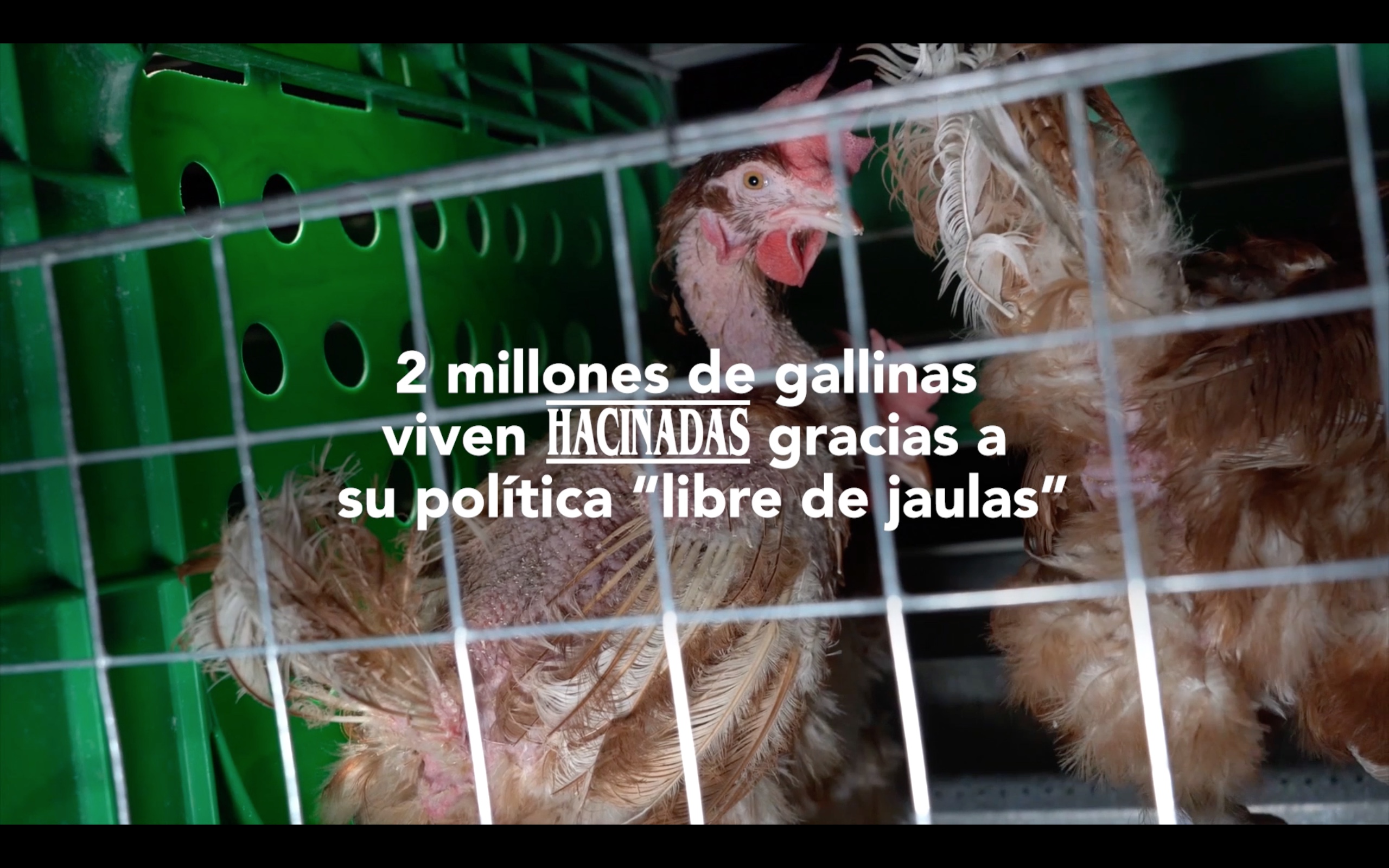 En él pueden visualizarse las deleznables condiciones de cautividad de las gallinas de las que proceden los huevos Hacendado de Mercadona.