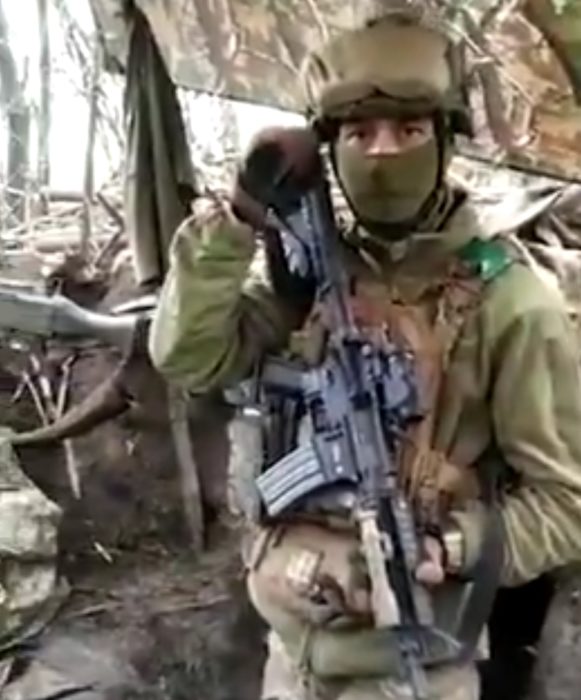 Saludan a un conocido común (un tal Andreï, o eso parece) y a sus seguidores (de las redes sociales se supone). Se nota que estos cuatro se conocen de antes de llegar ahí, nada indica que se hayan encontrado en “las trincheras” por casualidad. Yo diría que son militares, no creo que sean simples “quillos” que tras algunas cervezas en un chiringuito playero hayan decidido ir a la “trincheras” del Donbass.