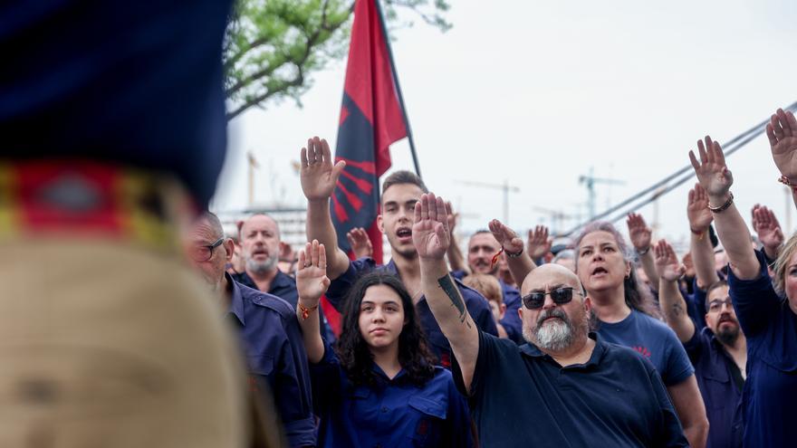 Entre loas al fundador de la Falange y gritos de “España, una, grande y libre”, los asistentes han entonado el ‘Cara al Sol’ con el brazo en alto mediante escoltados por la policía en una convocatoria oficial por parte de ambos partidos, que llamaban a sus simpatizantes a acudir a mediodía para rendir tributo a Primo de Rivera. También se han visto en el encuentro banderas de La Falange.