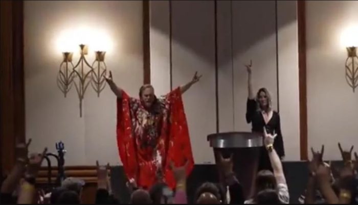 Satanistas destrozan la Biblia durante el ritual de apertura de SatanCon en Boston