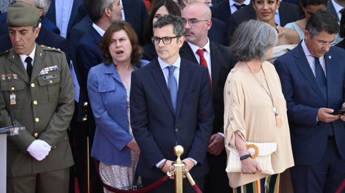 El Gobierno alega que la Comunidad de Madrid incumplió la ley que regula la presencia de cargos públicos en actos institucionales, mientras en la Puerta del Sol señalan que el Ejecutivo estaba representado por la ministra de Defensa, y que ya se había trasladado que Bolaños no ocuparía un lugar en la tribuna al acudir como acompañante de Robles sin invitación formal.