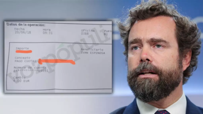 Carlos Aurelio Caldito, exvicepresidente de Vox en Badajoz y afiliado al partido hasta mediados de 2018, presentó como prueba un recibo bancario que obtuvo durante su etapa en el partido en el que consta «concepto pago cuotas, beneficiario Iván Espinosa».