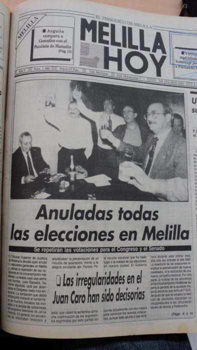 El Tribunal Constitucional de entonces -muy distinto del de ahora- ordenó la repetición de las elecciones, que había ganado en Melilla el PSOE. Las elecciones se repitieron y ganó el PP. Con el cambio de diputado en Melilla el PSOE de Felipe González perdió la mayoría absoluta que tenía en España, por cierto.