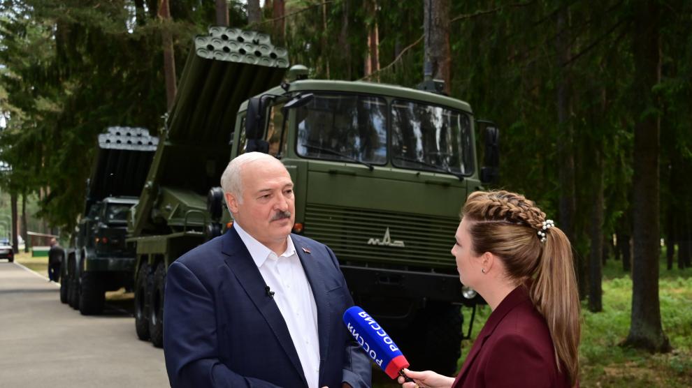 La entrevista fue difundida el martes por la noche y en las imágenes el dictador bielorruso aparece junto a vehículos militares con el fondo de lo que parece el silo destinado a almacenar las ojivas nucleares tácticas, de menor potencia que las estratégicas pero dotadas de un enorme poder destructivo. Aseguró que Bielorrusia tenía en la época soviética “numerosas instalaciones de almacenamiento nuclear” y actualmente “cinco o seis de ellas han sido restauradas y acondicionadas”.