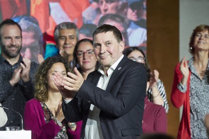 El coordinador general de EH Bildu, Arnaldo Otegi, durante un acto de EH Bildu, en el Palacio del Baluarte, a 11 de mayo de 2023, en Pamplona, Navarra (España).