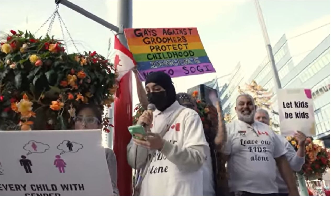 Las protestas se organizaron rápidamente luego de un incidente en una escuela de Alberta que involucró a estudiantes musulmanes y un maestro pro-LGBT.