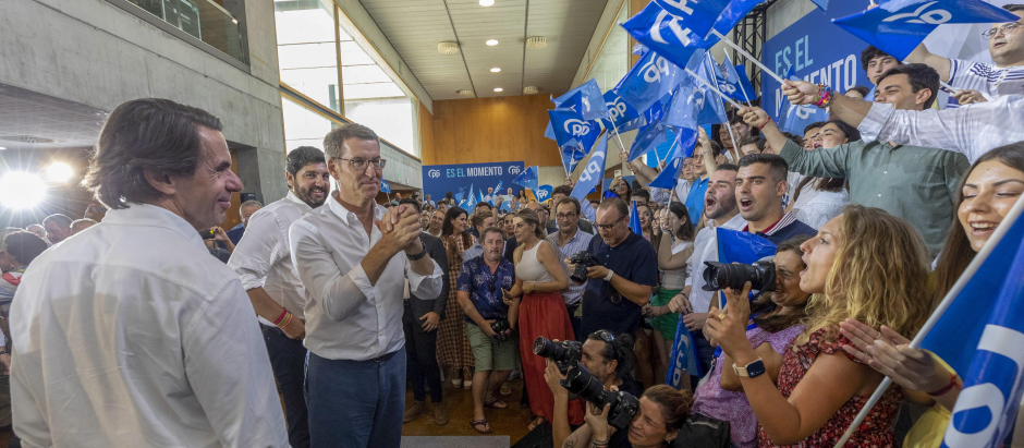 Este miércoles, el líder del PP dio un mitin en Murcia acompañado de José María Aznar. Precisamente en una tierra que el PP quiere poner como ejemplo del «bloqueo» que puede sufrir Feijóo por parte de Vox si su victoria no fuera lo suficientemente contundente. El lunes, Vox frustró la investidura del popular Fernando López Miras por negarse a una coalición.