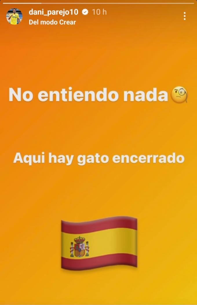 El centrocampista del Villarreal ha subido una ‘storie’ a su cuenta de Instagram poniendo en duda este cambio con respecto a los sondeos electorales, incluso los últimos que se produjeron a pie de urna: “No entiendo nada, aquí hay gato encerrado”, acompañado de un emoji de una cara pensando y una bandera de España.