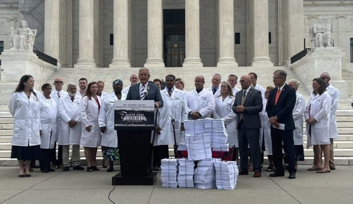 America’s Frontline Doctors y su fundadora y presidente, la Dra. Simone Gold, convocaron la “Cumbre de bata blanca: el ajuste de cuentas” el jueves 27 de julio en la Corte Suprema de los Estados Unidos, pidiendo justicia y rendición de cuentas con respecto al manejo de la pandemia de Covid-19.