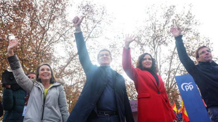 Acompañado por el líder del PP, Alberto Núñez Feijóo, y la presidenta de la Comunidad de Madrid, Isabel Díaz Ayuso, entre otros líderes ‘populares’, Almeida ha reivindicado que en el PP no necesitan “ni mediadores ni intermediarios”.