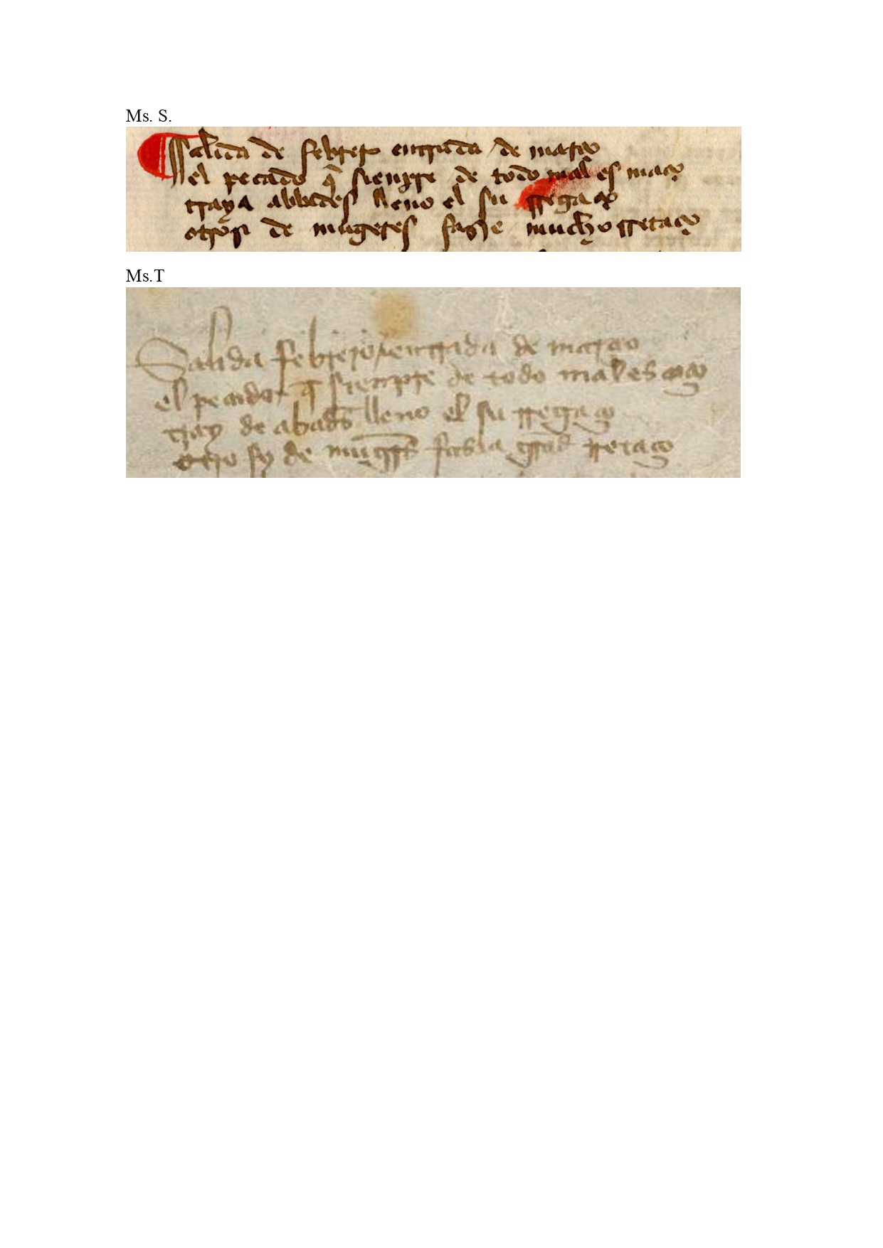 El lector podrá juzgar acerca de estas lecturas observando las imágenes de la estrofa en sus respectivos manuscritos: