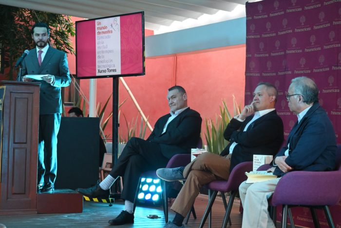 Eva Rancho- La Universidad Panamericana ha sido la última institución académica en acoger la presentación del libro de Xurxo Torres, “Un mundo de mentira’, en su periplo mexicano. El ensayo sobre el estado de la verdad en tiempos de revolución tecnológica publicado por Gestión 2000 (Grupo Planeta) y que acaba de lanzar su segunda edición fue descrito por Mariano Navarro, decano de la Escuela de Comunicación de esta universidad de la siguiente manera: “Es un libro provocador porque Xurxo es provocador. Hablar de la verdad y de la mentira es más que pertinente en este momento. Las instituciones debemos trabajar en formar a los jóvenes en pensamiento crítico”.