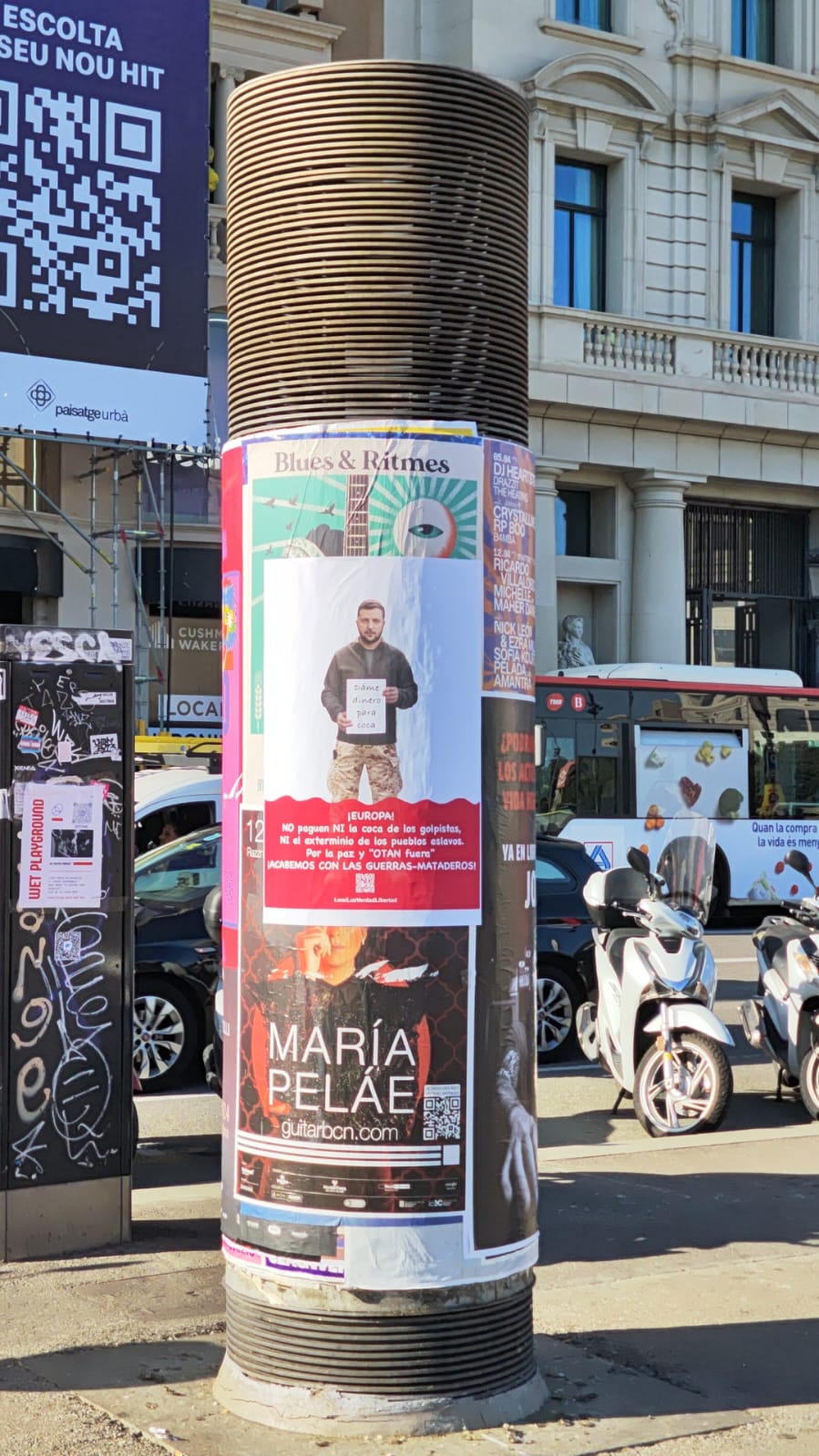 Carteles en Barcelona piden no dar más dinero a Zelensky “para cocaína” (Videos)