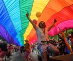 En lugares turísticos de la ciudad, activistas han colgado carteles pidiendo el fin de la ayuda financiera a Ucrania.