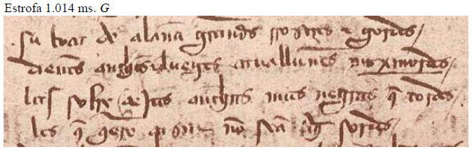 Poco comentaremos de éste, que tiene pleno sentido y coincide en ambos manuscritos, a excepción de la conjunción “e”, que falta en el ms. G haciendo su segundo hemistiquio hipométrico, por lo que lo reintegraremos con ese leve añadido del ms. S.