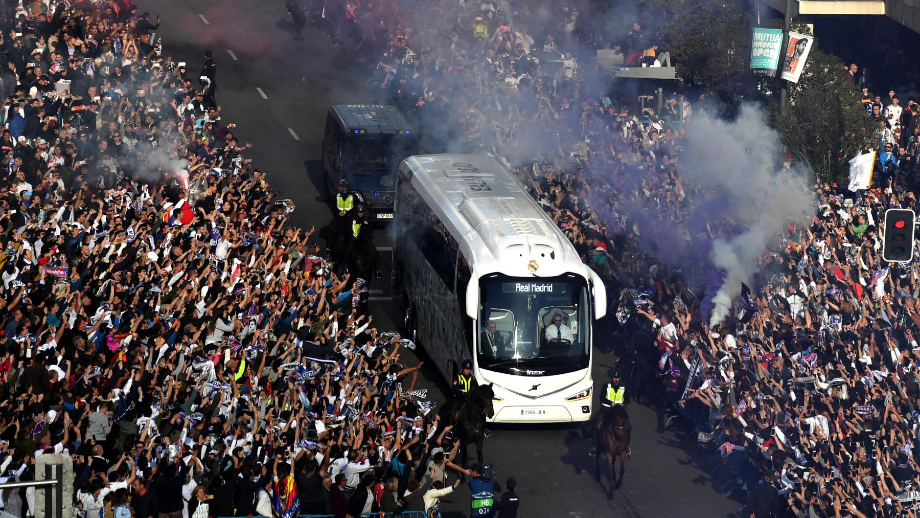 En un cartel difundido por la red se ve a un encapuchado apuntando y disparando un arma. El objetivo de su mira telescópica es el autobús del Real Madrid. “Mi querido hermano. Espera en un lugar próximo al punto de llegada de los jugadores. Apunta a ellos junto a sus seguidores”, es el mensaje que puede leerse en el cartel.