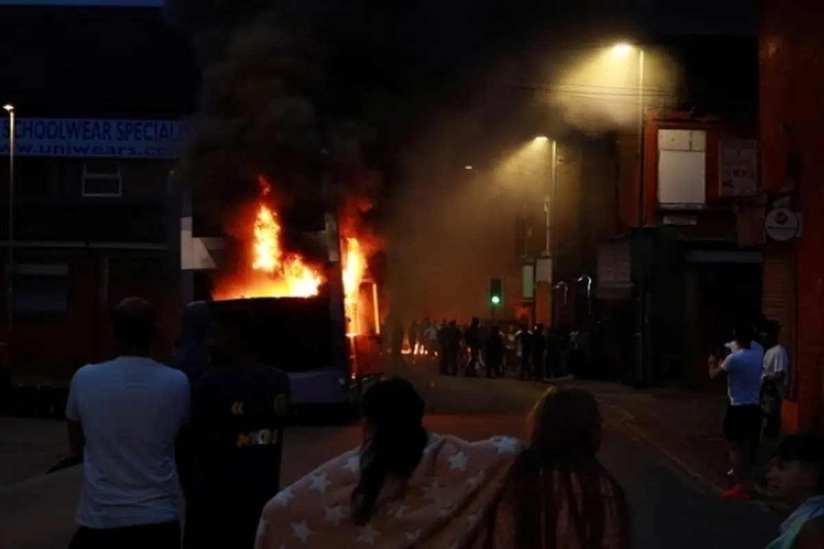 LGI.- Leeds, Reino Unido, fue testigo ayer viernes de una fuerte protesta con imágenes impactantes de un autobús en llamas, un coche de policía volcado y varias hogueras de gran tamaño en el barrio de Harehills, presuntamente provocadas. Las fuerzas del orden han emitido un comunicado expresando su extrema preocupación, ya que se están implementando cierres de carreteras y se aconseja a la población mantenerse alejada de la zona afectada.