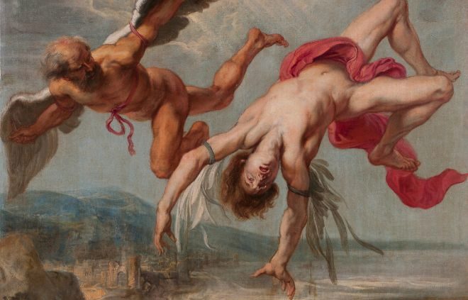 Y hasta podríamos poner al Profanador a protagonizar algún mito griego, como el de Ícaro, el que se pegó un colosal batacazo porque pretendió volar cerca del Sol con sus alas de cera… o el de Narciso, el que se ahogó en un estanque absorto en la contemplación de su belleza.