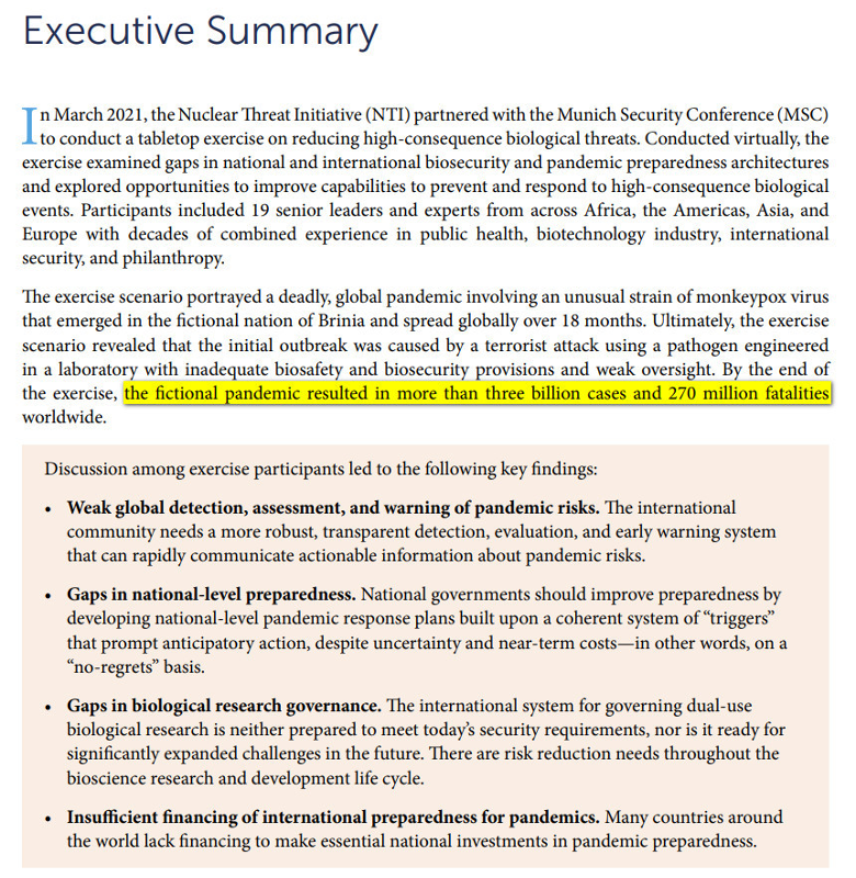 Todo el sistema de laboratorios de guerre biologica, de control de politicos y medios de comunicacion que vimos a la obra durante la estafa del COVID sigue ahi, dispuesto a sacar un virus todavia más mortal a cualquier momento.